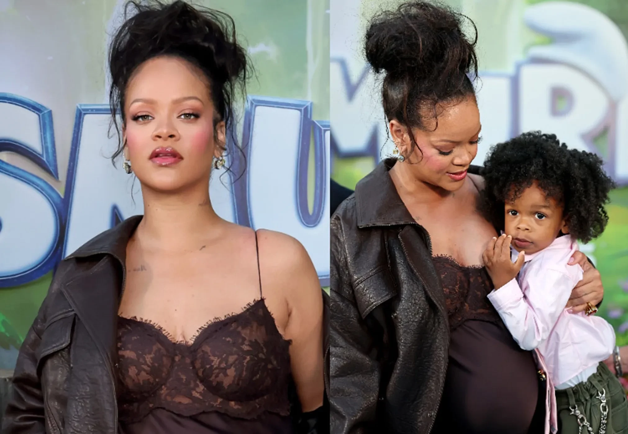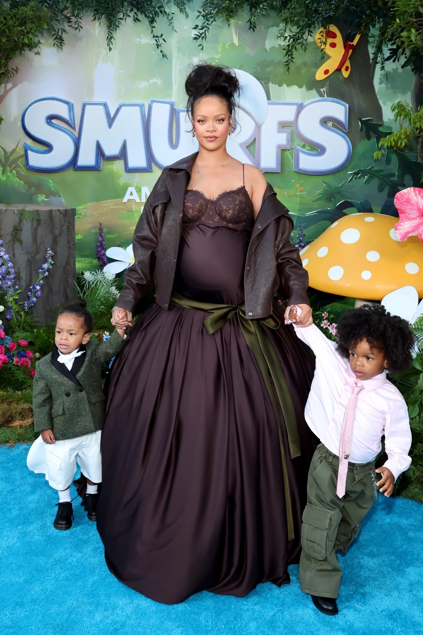 Рианна, которая находится в ожидании третьего ребёнка, появилась на премьере "Смурфиков" в Лос-Анджелесе вместе с двумя своими сыновьями от рэпера A$AP Rocky. 37-летняя барбадосская певица вывела трёхлетнего Ризу и его двухлетнего брата Риота на красную дорожку. Напомним, в фильме Рианна озвучила главную героиню — Смурфетту.