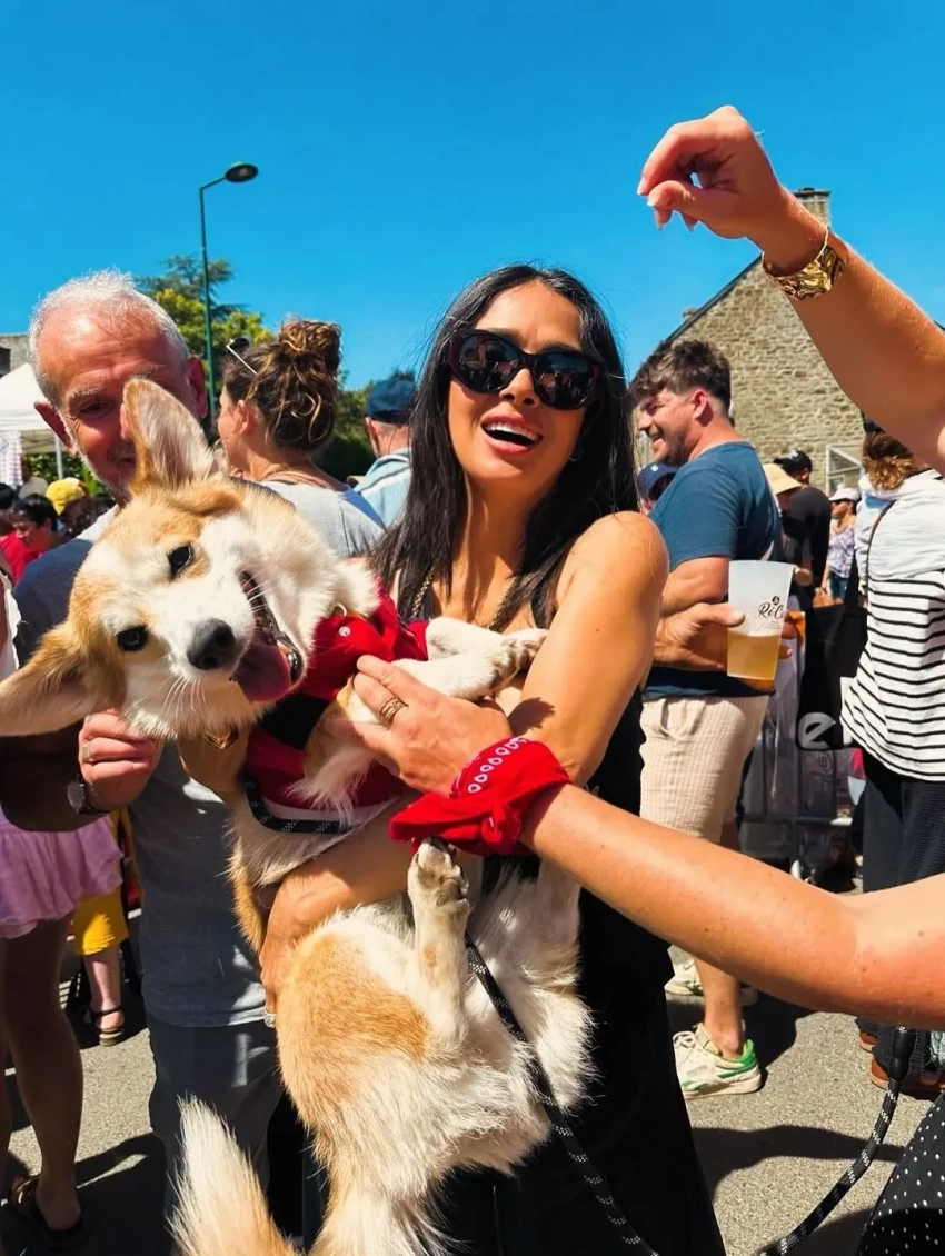 Звёздная семья посетила часть гонки, проходившей в деревне Треверьен в регионе Бретань, откуда родом отец Франсуа-Анри Пино, миллиардер Франсуа Пино. "В Треверьене с семьёй наслаждаемся традиционными блинчиками на "Тур де Франс", — подписала фотографии Сальма, на которых она позирует вместе с родными и зрителями.