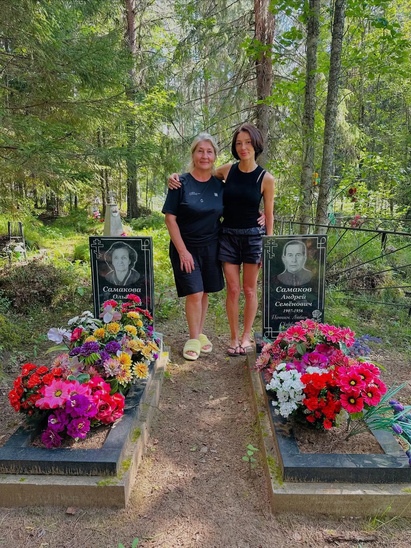 "Опять не в ту дверь зашла?". Настя Ивлеева проводит время в деревне вместе с мужем и матерью. Их раскритиковали за фото на кладбище
