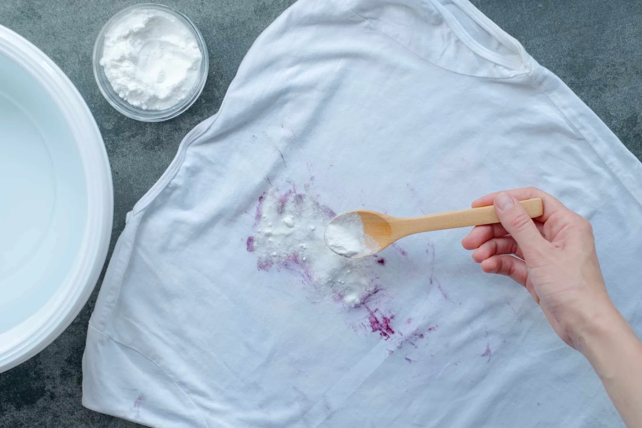 Соль мгновенно впитывает свежие пятна: красное вино, кровь или фруктовый сок. Для застарелых пятен крови растворите 2 ложки соли в стакане холодной воды и замочите вещь на полчаса.