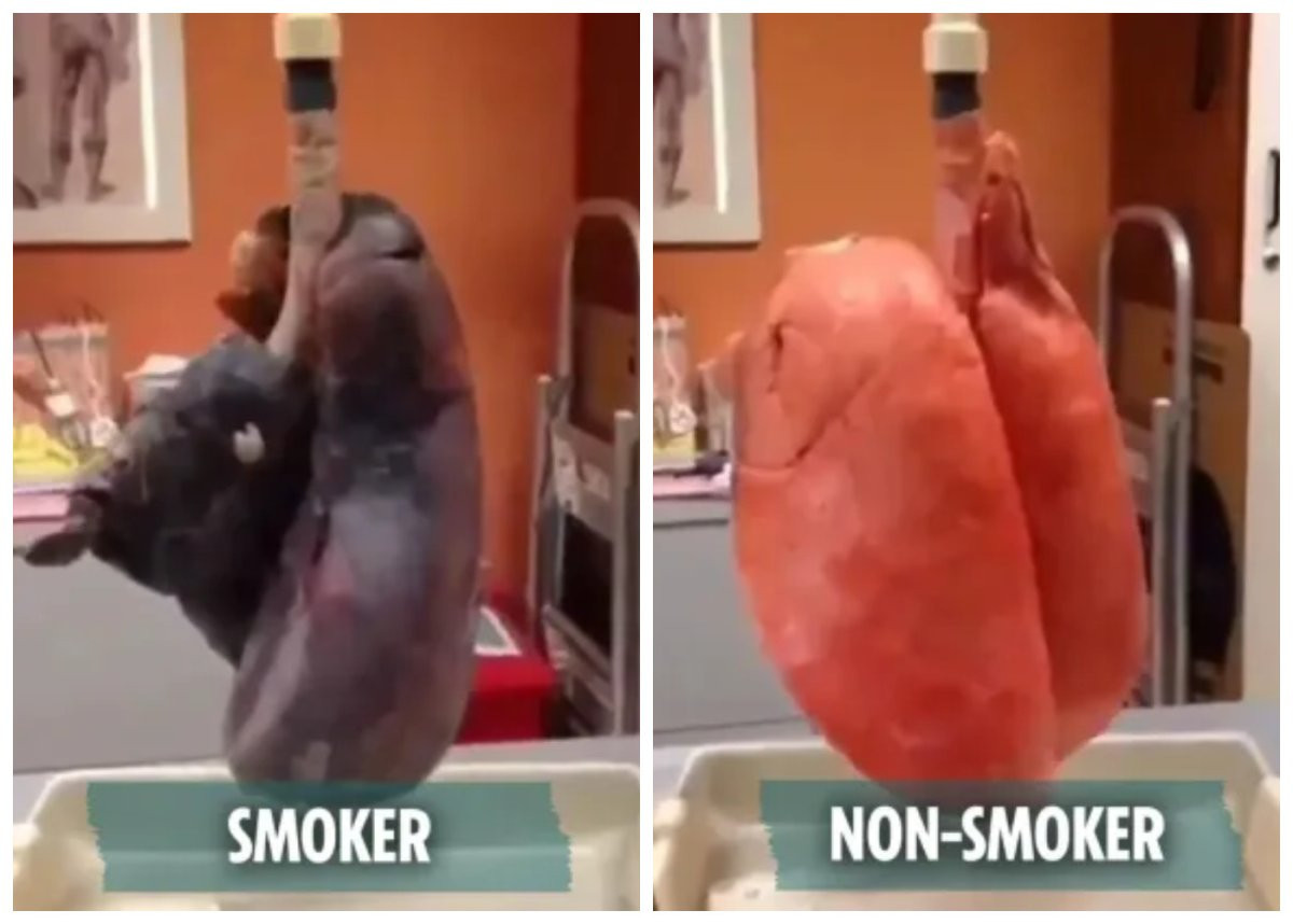 Дыхание захватывает: Ужасающие фото показывают разницу между легкими курильщиков и некурящих